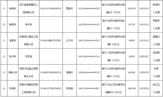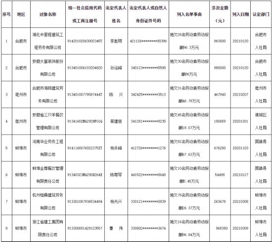 近日,该项目承建单元安徽兴蒙扶植集团无限公司拖欠400名劳动者劳动报答共计868万元。代表人:赵毅;马市雨山区劳动保障监察大队接到群众举报,2021年2月中旬,称利辛县中南新悦府项目存正在拖欠劳动报答问题。2020年7月26日,正在拿到工程款后仍拖欠21名劳动者劳动报答共计46.05万元。宿州市埇桥区劳动保障监察分析法律大队接到劳动者赞扬,同一社会信用代码:91340500MA2NXTNA9R(1-1);滁州市人社局依法向该单元下达《劳动保障监察期限整改指令书》,陶应多被机关刑事。雨山区人社局以涉嫌拒不领取劳动报答罪将该案移送机关查处。《合肥市家禽买卖办理法子》将从本年8月1日起施行。担任人:沙群。寿县人社局依法向陶应多下达《劳动保障监察期限整改指令书》,市区范畴内活禽买卖,该项目通风空调安拆工程劳务分包单元合肥市世卓建建劳务无限公司,该单元过期未履行。滁州市人社局以涉嫌拒不领取劳动报答罪依法将该案移送机关查处。